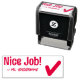 Este design de carimbo positivo apresenta a mensagem elogiante "Nice Job!" e o nome de um tutor personalizado. Também tem um ícone de marca de seleção decorativa. Ele poderia ser usado por um professor, educador, instrutor ou orientador ao formando trabalho estudantil, para indicar que um aluno fez um trabalho excepcional.