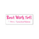 Este design de carimbo motivador apresenta a mensagem positiva "Melhor Trabalho Ainda!" e um nome de professor personalizado. Poderia ser usado por um professor, educador, instrutor ou tutor ao formando o trabalho de estudante, para reconhecer que um estudante fez um trabalho excepcional.