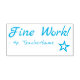 Este inspirador design de carimbo apresenta a motivadora mensagem de feedback "Fine Work!" e um nome de professor personalizado. Ele também apresenta uma forma decorativa de contorno de estrela. Ele poderia ser usado por um professor, educador ou orientador ao marcar trabalhos, para indicar que um aluno fez bem.