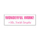 Este design de carimbo divertido apresenta a mensagem motivacional "TRABALHO MARAVILHOSO!" e um nome de professor personalizado. Ele poderia ser usado por um professor, educador, ou tutor ao marcar tarefas, para reconhecer que um aluno fez bem.