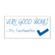 Este design de carimbo inspiracional mostra a mensagem motivacional "MUITO BOM TRABALHO!" e um nome de educador personalizado. Também apresenta uma marca de verificação decorativa. Ele poderia ser usado por um professor de escola, educador ou orientador ao formando o trabalho estudantil, para indicar que um aluno fez um trabalho excepcional.