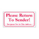 Este simples design de carimbo apresenta as mensagens "Please Return To Sender!" e "⬩ Recipiente Not At This Address ⬩" (Devolva ao remetente!). Pode ser utilizado para indicar que o correio postal recebido foi entregue no endereço errado e deve ser devolvido ao remetente.