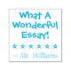 Este design de carimbo positivo mostra a mensagem "O que é uma maravilhosa afirmação!" e o nome de um professor ou educador personalizado. Ele também apresenta uma forma decorativa de estrela. Ele poderia ser usado por um professor, educador, instrutor ou tutor ao marcar tarefas, para reconhecer que o aluno fez bem.