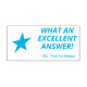 Este inspirador design de carimbo apresenta a mensagem motivadora "QUE RESPOSTA EXCELENTE!" e um nome de tutor personalizado. Ele também apresenta uma forma decorativa de estrela. Poderia ser usado por um professor, educador, instrutor ou tutor ao formando o trabalho de estudante, para reconhecer que um estudante fez um trabalho excepcional.