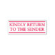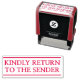 Este design de carimbo minimalista apresenta a mensagem "RETORNAR AO REMETENTE COM KINDLY". Ele pode ser usado para indicar que o correio recebido foi entregue para o endereço errado ou para um destinatário desconhecido e deve ser devolvido ao remetente.