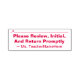Este design de carimbo básico contém a mensagem "Please Review, Initial, And Return Logo" (Revise, Inicial e Retorna imediatamente), juntamente com uma linha que pode ser gravada acima de uma assinatura ou iniciais. Ele também apresenta um nome personalizado de professor ou professor. Pode ser usado por um educador, professor ou tutor para pedir aos pais ou tutores de um aluno que revejam e reconheçam a marca que um estudante ganhou num exame, projeto, teste, teste ou outro trabalho escolar.