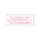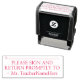 Este design de carimbo atualizado contém a mensagem "SIGN AND RETURN PROMPTLY TO", além de uma linha onde uma assinatura ou iniciais poderiam ser escritas acima. Também apresenta um nome de tutor personalizado. Talvez pudesse ser usado por um professor, professor ou educador para pedir aos pais ou guardiães de um aluno que revejam e reconheçam a marca que um estudante recebeu num projeto, num jornal, num exame, num questionário ou noutra tarefa escolar.