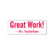 Este design de carimbo positivo apresenta a mensagem "Trabalho Excelente!" e o nome de um tutor personalizado. Ele poderia ser usado por um professor, educador, ou tutor ao marcar tarefas, para reconhecer que o aluno fez um trabalho de excelente.