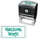 Este design de carimbo encorajador apresenta a mensagem de feedback positiva "AWESOME WORK!". Ele poderia ser usado por um professor de escola, educador, instrutor ou tutor ao marcar tarefas, para indicar que o aluno fez um trabalho de excelente.
