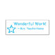 Este design de carimbo inspiracional mostra a mensagem inspiradora "Trabalho Maravilhoso!" e o nome de um professor ou educador personalizado. Ele também apresenta um ícone decorativo em forma de estrela. Poderia ser usado por um professor ou educador ao marcar missões, para reconhecer que o aluno fez bem.