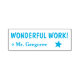 Este design de carimbo positivo apresenta a mensagem positiva "WONDERFUL WORK!" e o nome de um tutor personalizado. Ele também apresenta uma forma decorativa de estrela. Ele poderia ser usado por um professor, educador ou orientador ao formando trabalho estudantil, para indicar que um aluno fez um trabalho excepcional.