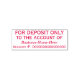 Este design de carimbo, que chama a atenção, contém a mensagem "FOR DEPOSIT SOMENTE to the account of", além de um nome pessoal/profissional personalizado e de um número de conta. Poderia ser usado por um trabalhador administrativo, um funcionário de escritório ou um indivíduo para adicionar eficientemente um despejo restritivo a um cheque.