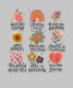 Descrição: Uma coleção de citações inspiradoras desenhadas à mão e ilustrações com flores, arco-íris, coração e mensagens elevadoras como "Seja gentil sempre", "Você importa", "Foco no Bem" e "Você é amado." A paleta de cor pastel macia e a tipografia brincalhona criam uma estética quente e positiva.