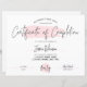 Certificado de Conclusão Feminina com elegante fundo de aquarela rosa. Perfeito para completar prêmios para cursos profissionais. Use-o para certificado de lash ou diploma de salão de beleza. Este design de certificado de acreditação apresenta fonte manuscrita moderna e design e espaço de marca d'água para detalhes e logotipos de sua empresa. Perfeito para criar prêmios de conclusão para seus alunos.