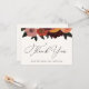 O cartões de agradecimentos apresenta uma cascata de pincel de aquarelas, borgundy e laranja florais para um tema do outono. Personalize com suas informações ou clique em "Clique para personalizar mais" para editar estilos de fonte, tamanho e cores. Também pode ser personalizado no verso com sua própria mensagem digitada ou excluir este espaço para escrever manualmente seu próprio obrigado.