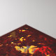 Uma faixa estreita atravessa um cheio silencioso de vidros de campo e sebes, confinado por muros de pedra e gramíneas que correm em flecha. Dois gatos brincam na pista e na parede na sombra das árvores coloridas.