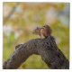 Um pedaço bonito se posiciona para a câmera em um membro da árvore contra um fundo de cor do outono.