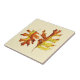 O outono deixa azulejo com uma ilustração a tinta e a aquarela, com duas folhas de carvalho amarelo acastanhado. Uma das folhas tem um lado enrolado que se parece com uma mão que dá ao parceiro dançante. Este azulejo de amantes da natureza tem um fundo personalizável.
