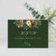 The Autumn Floral & Wreath RSVP - Emerald features a botanical wreath, bride & grooms first initials and a wildflower bouquet in the beautiful colors of autumn on an emerald green background. The back has details for the recipient to fill out. Designed to coordinate with the "Floral & Foil Botanical Wreath" Wedding Collection. To change details, click «Personalize». To move the text or change the text size, font, or color click «Click to customize further» initials