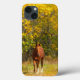 Um belo cavalo Chestnut caminhando através da folhagem do outono torna esta uma capa de telefone especial e única.