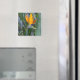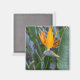 Uma fotografia de perto de uma bela ave de flor do Paraíso impressa numa imã de geladeira quadrada.