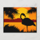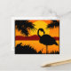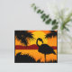 Cartão postal colorido com um pôr do sol e uma cena de pássaro. Linda arte com cores laranja e pretas. Adicionar sua própria mensagem