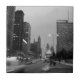 Uma bela fotografia noturna da Michigan Avenue Chicago Illinois em março de 1967. Esta imagem é uma imagem de alta dpi de um celuloide original negativo. Adoramos o efeito desfocado dos carros balançando. .