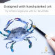 Este avental adulto apresenta um caranguejo em tons náuticos de azul. Use os campos modelo para adicionar seu texto personalizado. Para ver os itens correspondentes visite www.zazzle.com/dotellable Arte e design únicas por Victoria Grigaliunas do Do Tell A Belle.