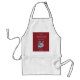 Gobble, Gobble, um avental divertido que apresenta um peru a aquarela para o Dia de Ação de Graças num fundo de vermelho profundo num avental branco.