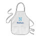 This white apron features some bold slab serif type fonts in light and dark blue . Easy to personalize it now with his monogram and name . From the store of lumirala .