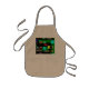 O avental desta criança tem um design geométrico de caminhões e carros na estrada e no estacionamento.