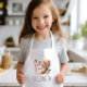 This kids' apron for animal lovers features a cute illustration of a red and brown squirrel surrounded by autumn foliage. Personalize it with your child's name in brown hand-printing style letters. Makes a great apron for boys or girls!