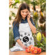 Excelente tecido. Resistente e espesso. Bom para não deixar respingos de café e outros alimentos sujarem a roupa. Quem ganhou adorou que o avental tinha bolsos. Eu e quem ganhou adorou a impressão. De excelente qualidade e muito bom gosto.