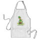 Um avental irlandês divertido apresenta um Leprechaun sentado num toco com Shamrocks aos seus pés. Ele está vestido de verde e está segurando um punhado de moedas de ouro.