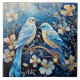 Belas aves e flores ornamentais em azul decorativo e ouro, geradas por IA.