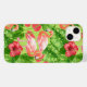 Padrão feito de pinturas com folhas de monstera, flores de hibisco, flores de flamingo e aves