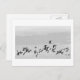 Um bando de pássaros voa através do cartão postal. Foto de Pequenas Gaiolas estilizadas em tons de cinza.