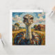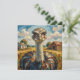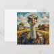 Um cartão em branco fofo de 'pensando em você' para um amigo ou familiar com um close-up em impasto de um avestruz numa fazenda.