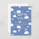 Este cartão de agradecimento plano temático de aviões de papel para festa de aniversário de menino ou menina apresenta vários aviões de papel brancos dobrados ilustrados com trilhas de voo curvas e tracejadas caprichosas entre nuvens brancas fofas em um fundo azul personalizável - por katz_d_zynes