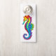 Articulação artificial, brilhante, arco-íris, cavalo de mar poligonal sobre fundo branco. Tatuagem brilhante.