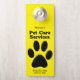 Diga aos vizinhos e amigos que você está procurando animais de estimação para cuidar! Esses cuidados personalizados para animais de estimação, sentada para gatos, passeio de cães, babá para animais de estimação e cabides de negócios de transporte de animais de estimação são fáceis de personalizar com seu nome, serviços oferecidos e detalhes de contato. Apresenta um fundo colorido, fontes e impressões de pata em negrito.