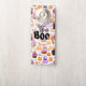 O cabide da porta é uma deliciosa e divertida peça de decoração temática do Dia das Bruxas que captura o espírito da estação. O fundo do cabide é enfeitado com uma variedade colorida e vibrante de doces de Halloween. Uma mistura de doces laranja, pretos, roxos e verdes forma um pano de fundo alegre e atraente que instantaneamente lembra a atmosfera doce e festiva do Halloween. No centro do cabide da porta, exibido de forma destacada, estão as palavras "Você foi booed." As palavras são escritas em uma fonte instável, ligeiramente estranha que exumenta uma sensação de diversão maliciosa. As letras são esboçadas em uma cor branca fantasma, criando um sutil contraste em relação ao fundo cheio de doces. Cada letra parece ter uma personalidade divertida própria, contribuindo para a vibração divertida e convidativa do hanger da porta.
