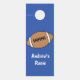 Um cabide de porta de futebol azul, que você pode facilmente personalizar com o nome deles. Excelente para o quarto de uma criança! A parte de trás deste corredor de futebol tem um monte de bolas de futebol contra um fundo azul.