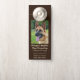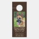Este cabide de porta editável apresenta uma foto de um cão German shepherd e os detalhes abaixo. O texto e a foto podem ser editados, então mude os detalhes, assim como a foto, e torne-a sua! A cor de fundo em ambos os lados também pode ser alterada. Aproveite o seu novo e editável fone portátil para o portão!