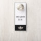 Este cabide de porta é de dois lados e coroado com uma coroa prateada no fundo. Bordas superiores cercadas por uma borda de cinza prateada com texto de amostra de "The Queen Is In". Personalize este item de acordo com o seu gosto com qualquer cor ou frase desejada, ou comprar como projetado.