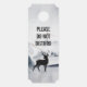 Um cabide de porta com uma imagem de aquarela apresentando uma rena preta de silhueta, entre alguns pinheiros. Esquema de cor neutra a preto e branco.
