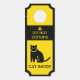 Sinal de porta para avisar as pessoas a FICAREM FORA! Não Incomodar sinal em amarelo e preto com um gato e "dentro de gato".