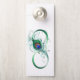 O símbolo do infinito com uma pena brilhante, verde, de pavão artístico sobre um fundo branco. Tatuagem.