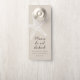 Recebendo convidados de casamento no hotel deles com o nosso gira vintage, feirante de porta estelar de branco e bronzeado. A mensagem "não perturbe" está na frente, e a sua própria mensagem de boas-vindas está no verso. Esta é uma maneira divertida de surpreender seus convidados e cumprimentá-los depois da viagem para alcançar seu casamento na praia.