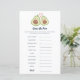 Avocado Gênero Neutro do Chá de fraldas Adivinhem Preço é a adição perfeita para a celebração do seu chá de fraldas! Este jogo divertido e interativo apresenta cartões de jogo adoráveis e temáticos de abacate que são adequados para qualquer chá de fraldas, independentemente do sexo. Reúna seus convidados e desfrute de um jogo encantador cheio de antecipação e entusiasmo. Com ilustrações charmosas de abacate e uma design neutra em termos de gênero, este jogo de bingo certamente trará alegria e riso à vossa ocasião especial.